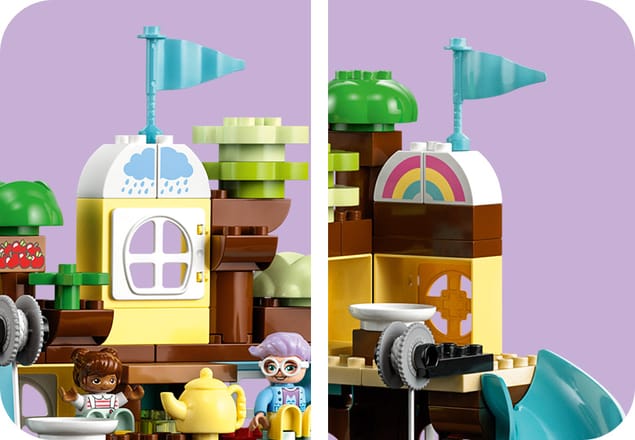 - Leuke speelgoedboomhut voor kleine leerlingen – peuters vanaf 3 jaar verkennen de boomtoppen, ontwikkelen zelfexpressie en scherpen hun motorische vaardigheden aan met de LEGO® DUPLO® 3in1 Boomhut (10993)